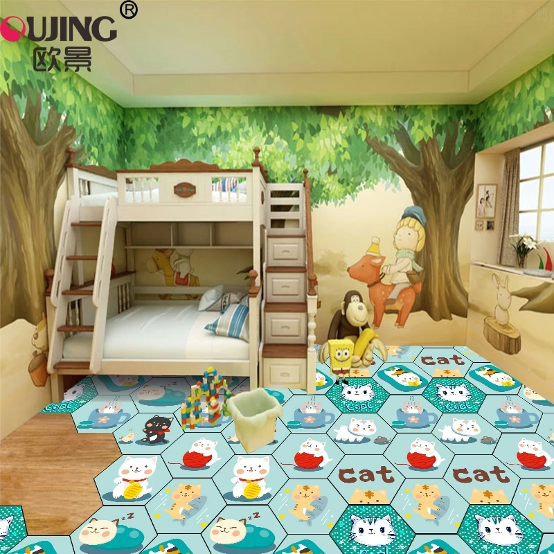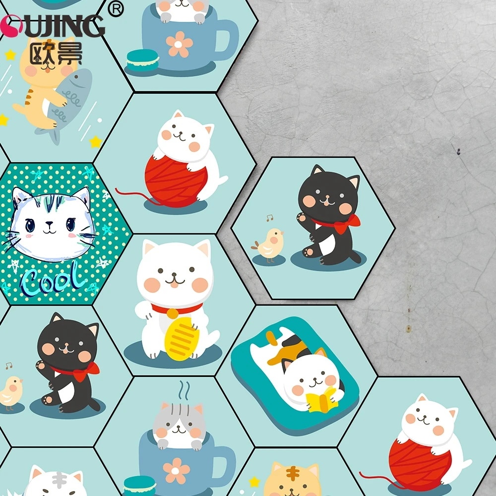 Cartoon Cute Kitten Cats Hexagon Tile Floor Wall Sticker Kid's Rooms Nursery Bathroom Non-slip Mat