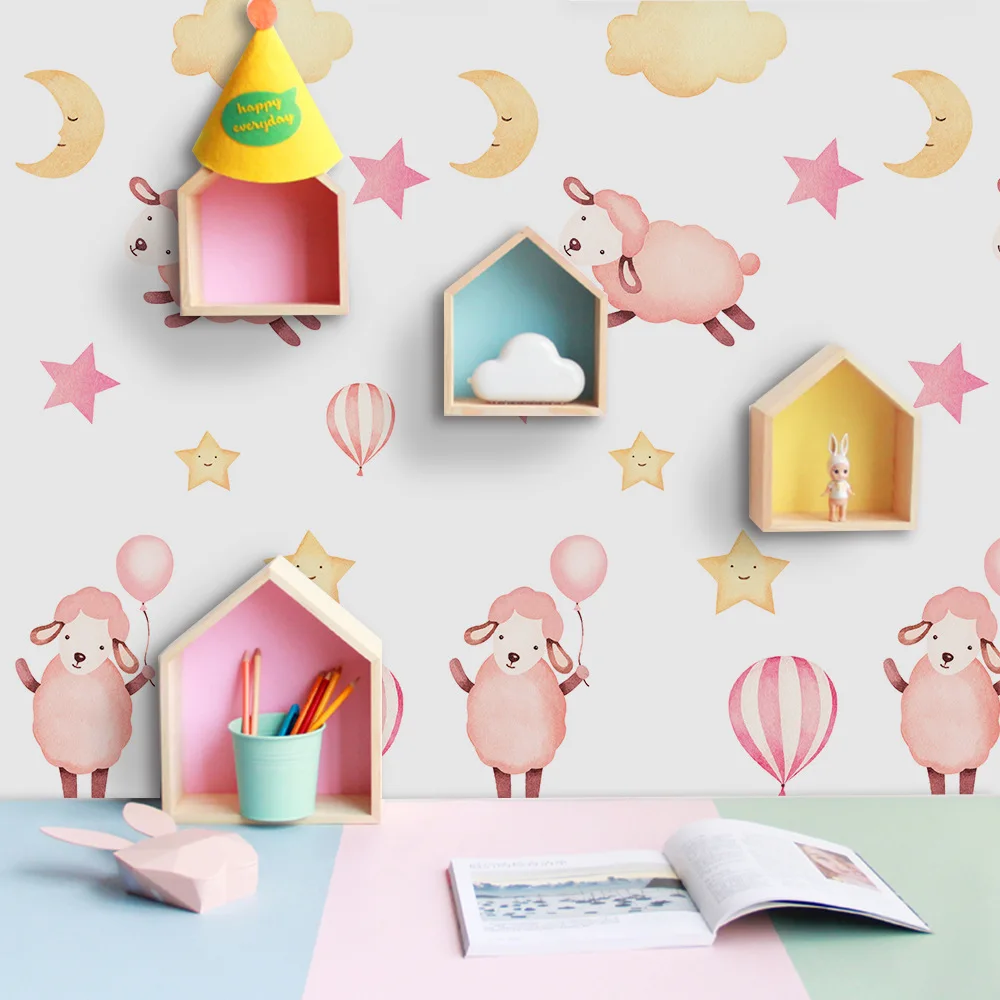 Best Funlife Cartoon Sheep Wall Decal for Kids Room DecorationPink Wall StickerSelf Adhesive PosterRemov