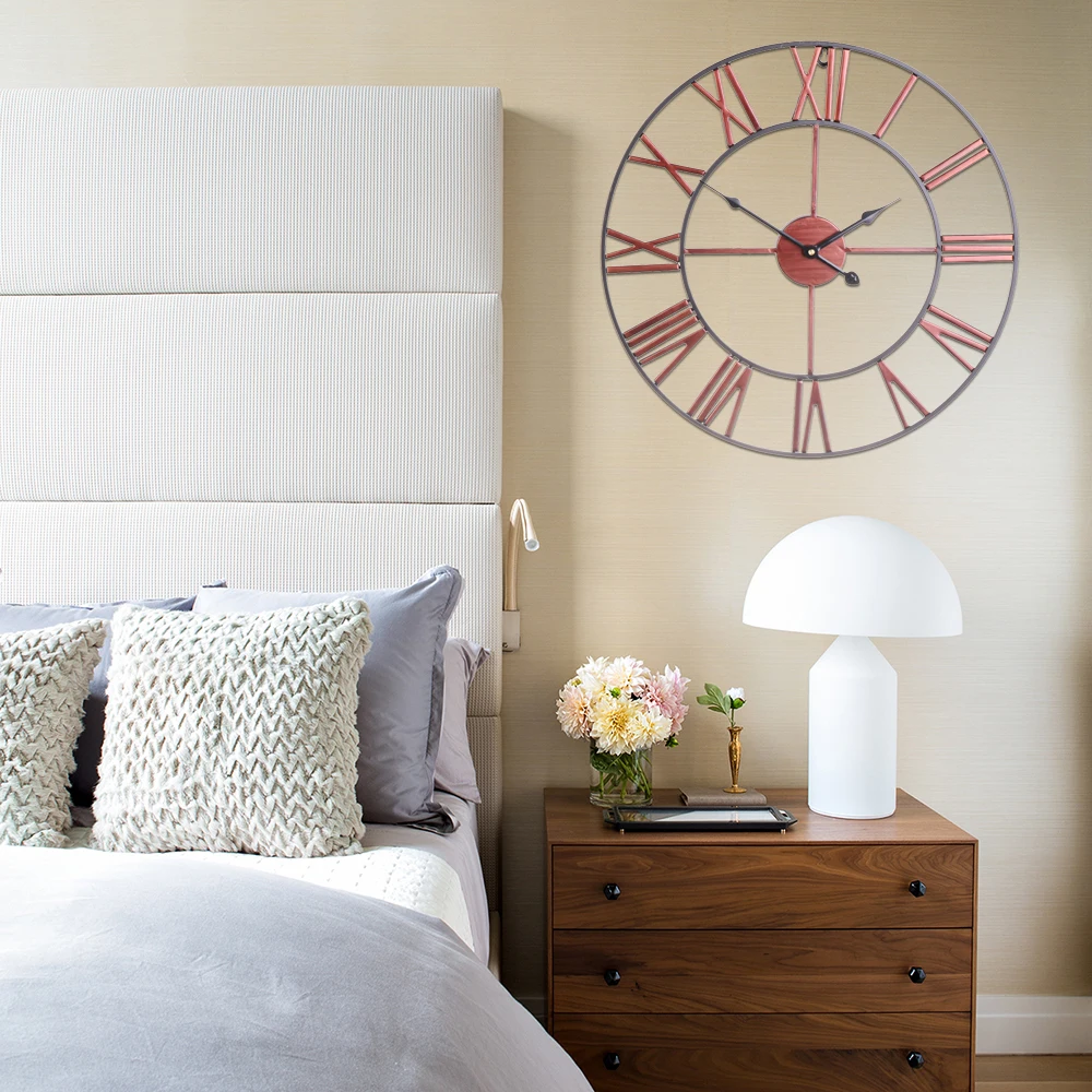 New 3D Circular Retro Roman 40/50cm Wrought Hollow Iron Vintage Large Mute Decorative Wall Clock On
