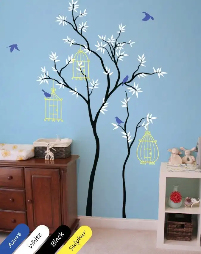 Best Seller Large Size Tree Wall Sticker Birdhouses Leaves And Cute Birds Vinyl Nursery Baby Room Decals Home D