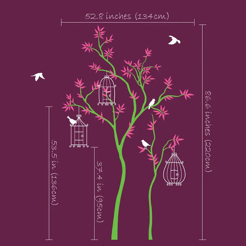 Large Size Tree Wall Sticker Birdhouses Leaves And Cute Birds Vinyl Nursery Baby Room Decals Home D