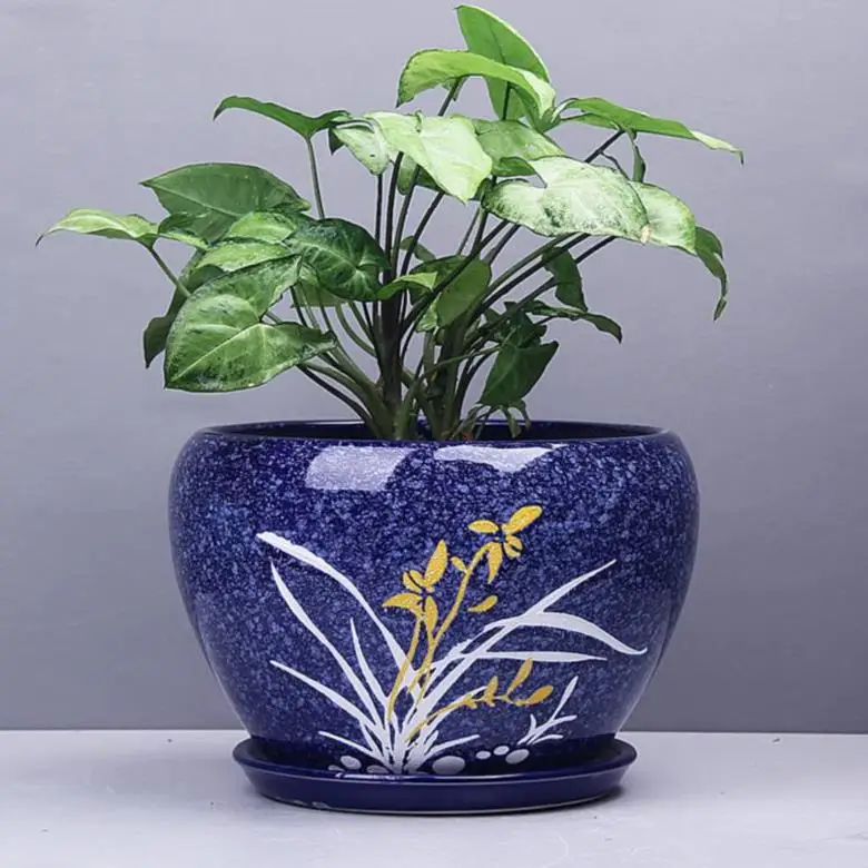 Chinese style ceramic flower pot wholesale orchid green plant pot Water-absorbing breathable bonsai