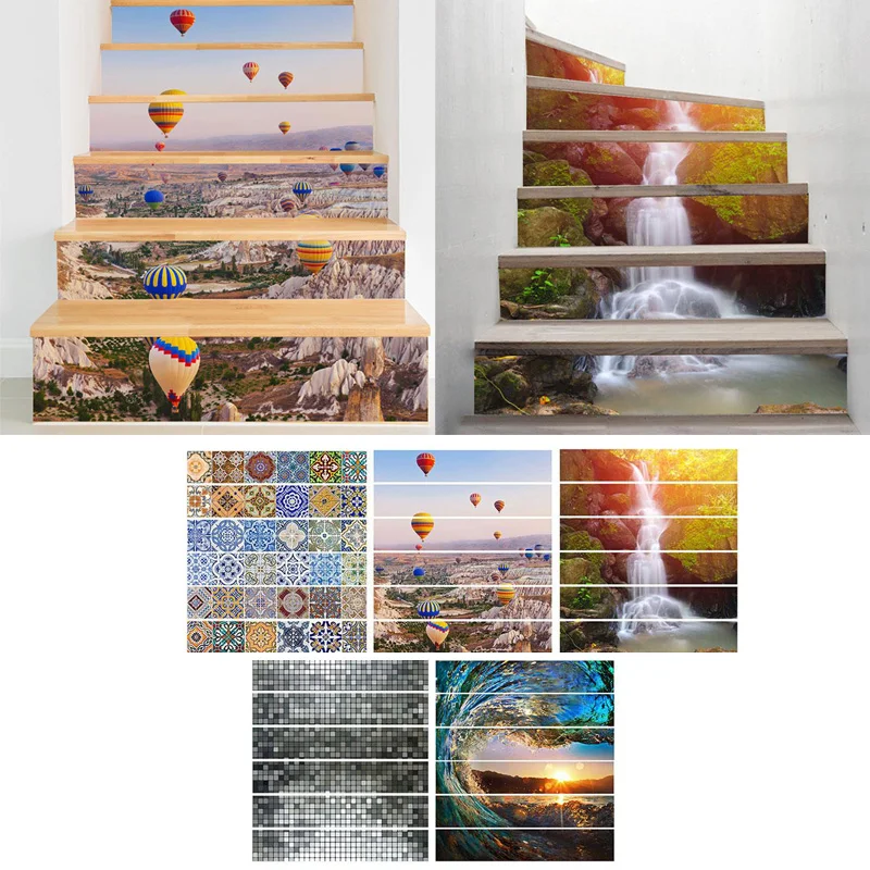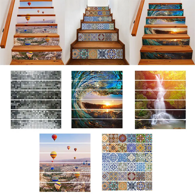 BEST QUALITY 6Pcs 3D DIY Floor Wall Sticker Mural Decoration Sea Water Retro Stair Decals