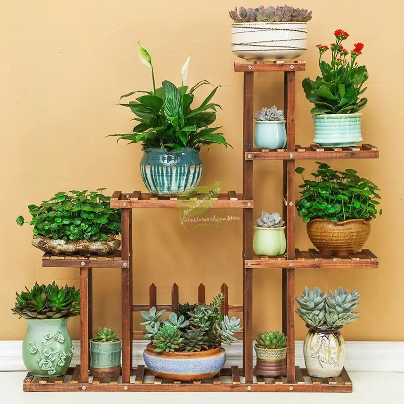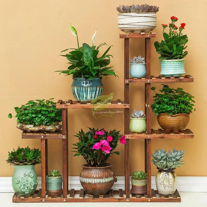 HOT Sale BHot Carbonized Wood Damp-proof Antiseptic Flower Rack Multi-layer Plant Stand Shelves Garden Patio