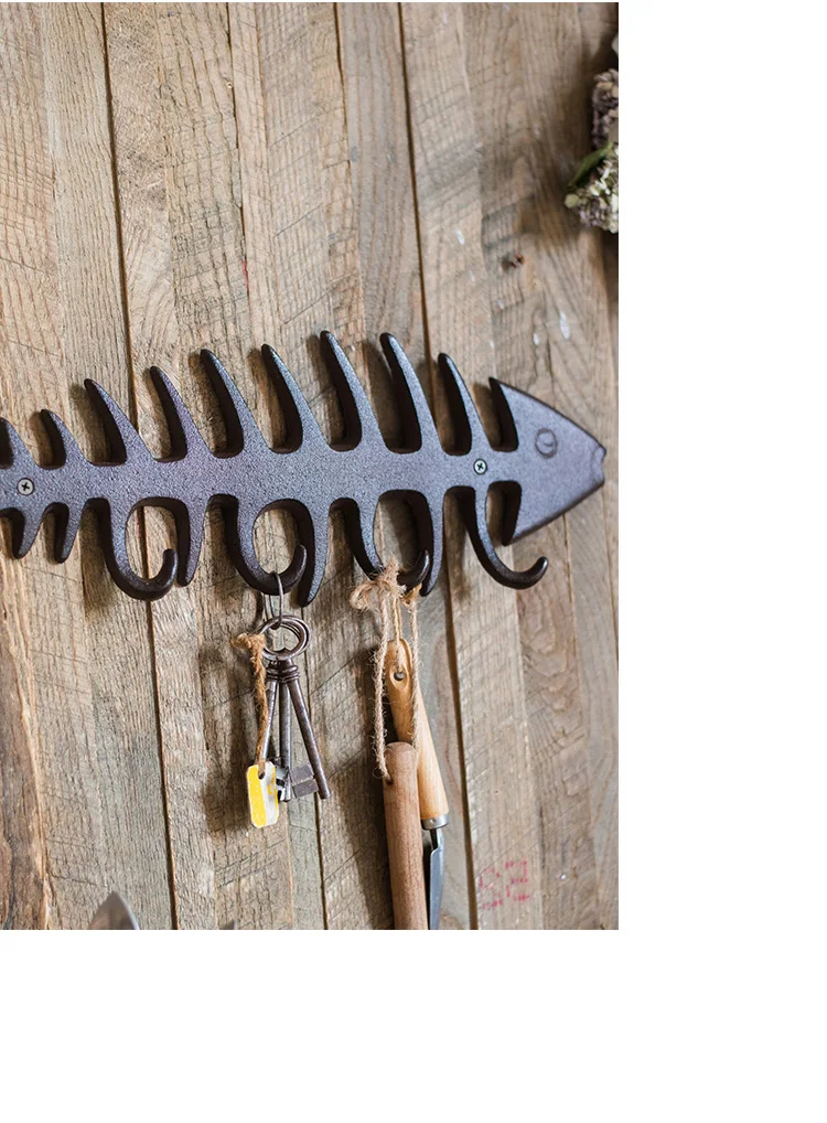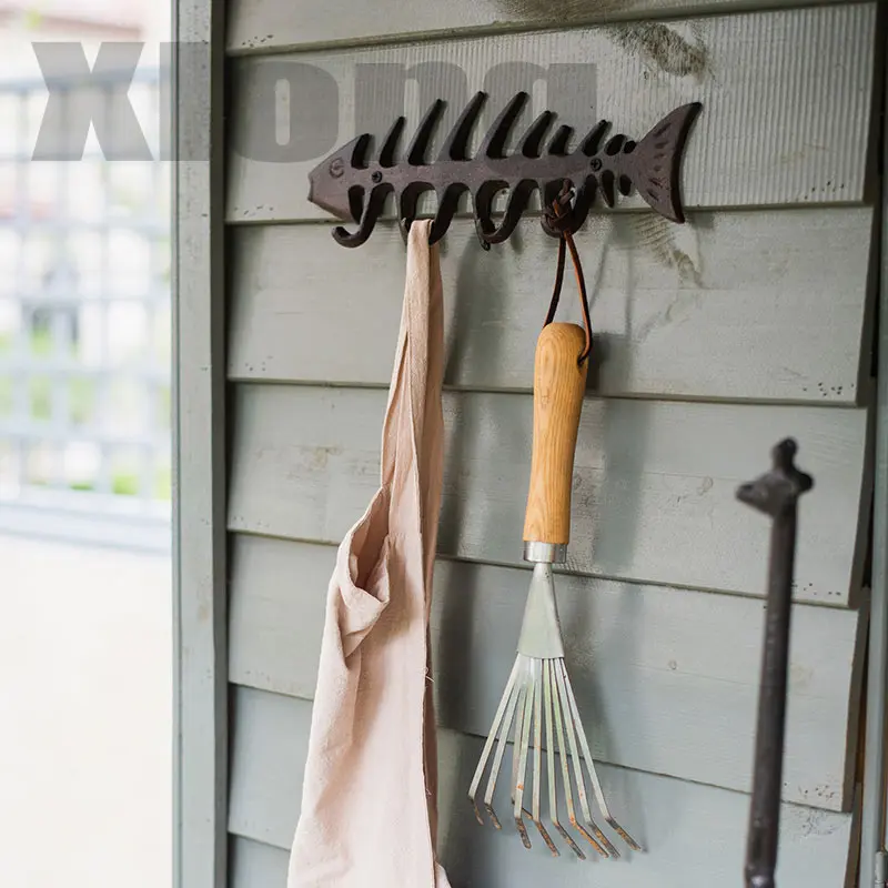 Best Cast Iron Fish Bone Shape Hook Wall Hook Garden Courtyard Outdoor Decoration Personality Groceries