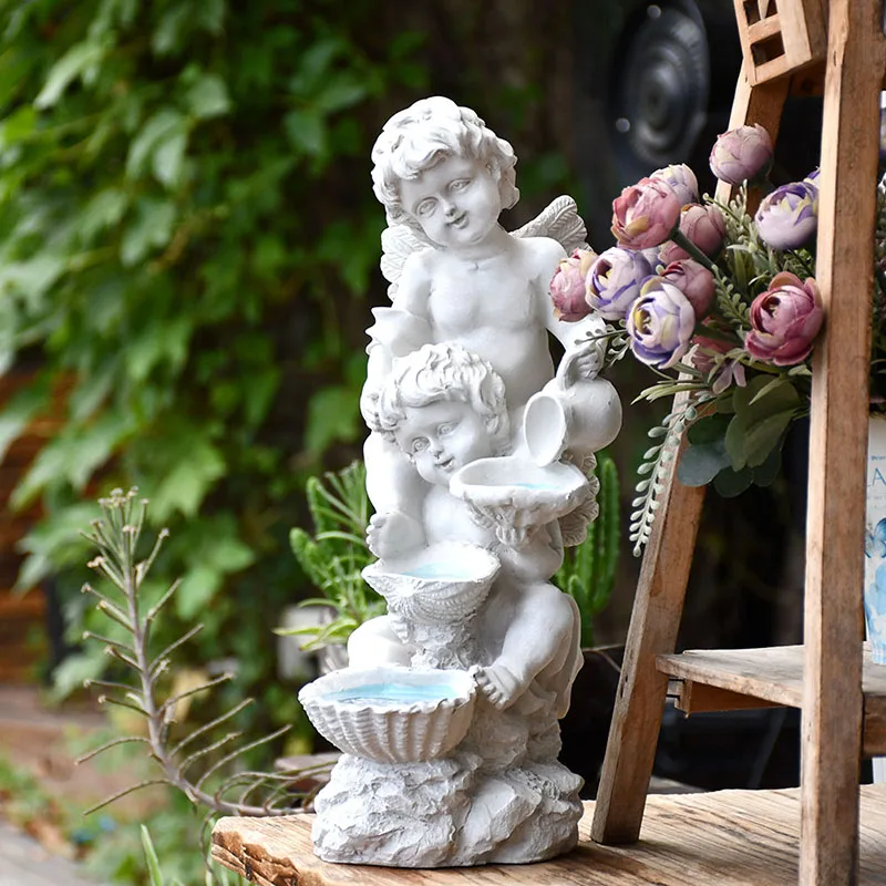 BEST SELLER Outdoor Garden Two Angel Boys Holding A Kettle Crafts Statues Decor Home Courtyard Balcony With Sol